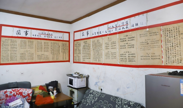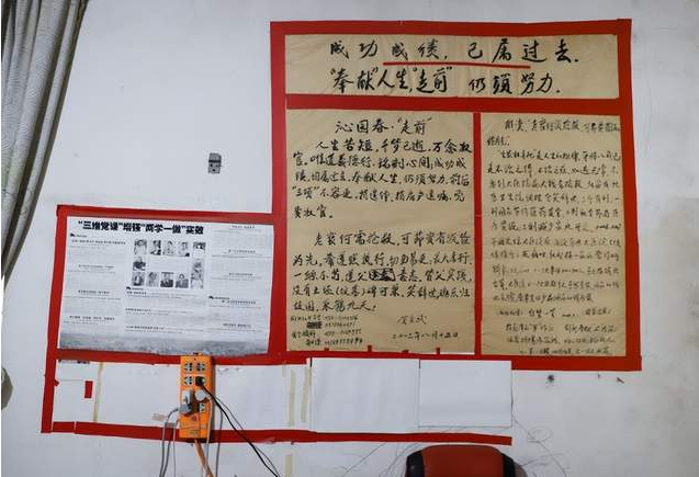 賀宗武的家中,墻壁上貼著的都是自己對(duì)修善自身、教育子女、報(bào)效祖國的感言心得