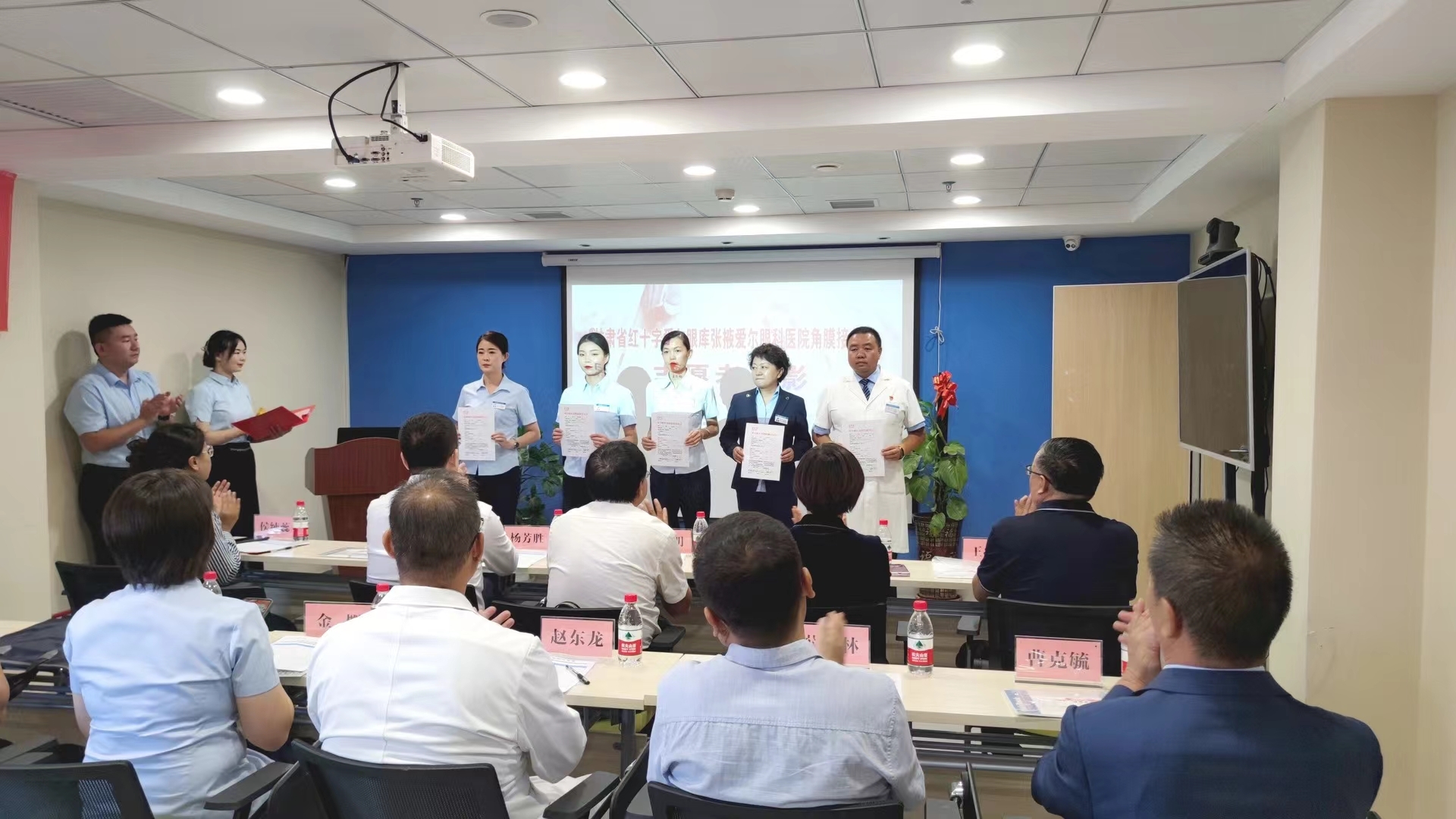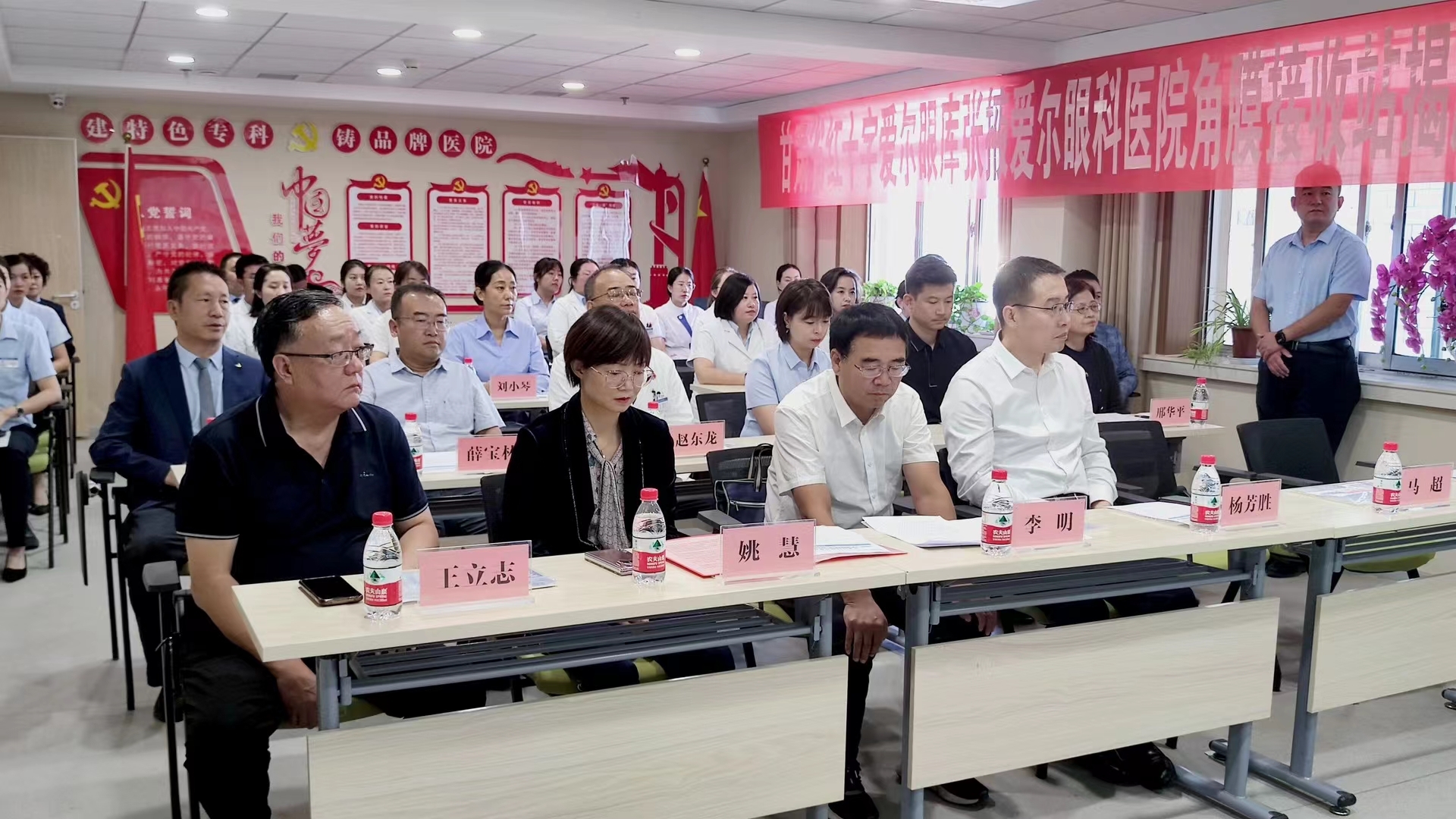 醫(yī)院聯(lián)合共建的“張掖愛爾眼科角膜登記接收站”揭牌儀式在張掖愛爾眼科醫(yī)院舉行。甘肅省紅十字會黨組書記,專職副會長楊芳勝;甘肅省紅十字會健康促進辦處長侯純?nèi);甘肅省紅十字會健康促進辦劉江;張掖市衛(wèi)生健康委副主任李明;張掖市紅十字會秘書長王立志;甘州區(qū)衛(wèi)生健康局局長馬超;愛爾眼科醫(yī)院集團甘青寧藏省區(qū)副總院長、蘭州愛爾眼科醫(yī)院CEO姚慧;愛爾眼科醫(yī)院集團甘青寧藏省區(qū)眼表角膜學組副組長,蘭州愛爾眼科醫(yī)院眼表角膜科主任邢華平;愛爾眼科醫(yī)院集團甘青寧藏省區(qū)財務總監(jiān)薛寶林;張掖愛爾眼科醫(yī)院CEO曹克毓;張掖愛爾眼科醫(yī)院業(yè)務院長趙東龍等領導、嘉賓出席會議。