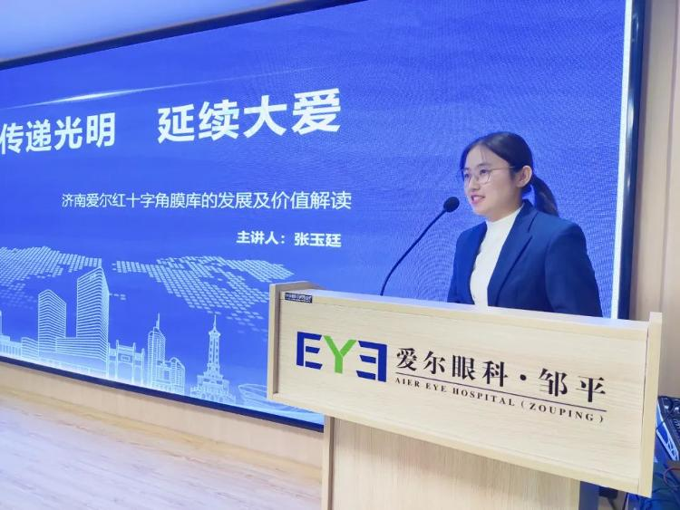 愛爾眼科醫(yī)院集團角膜病事業(yè)部眼庫管理部經(jīng)理楊麗紅介紹愛爾眼科角膜捐獻接收登記站情況。