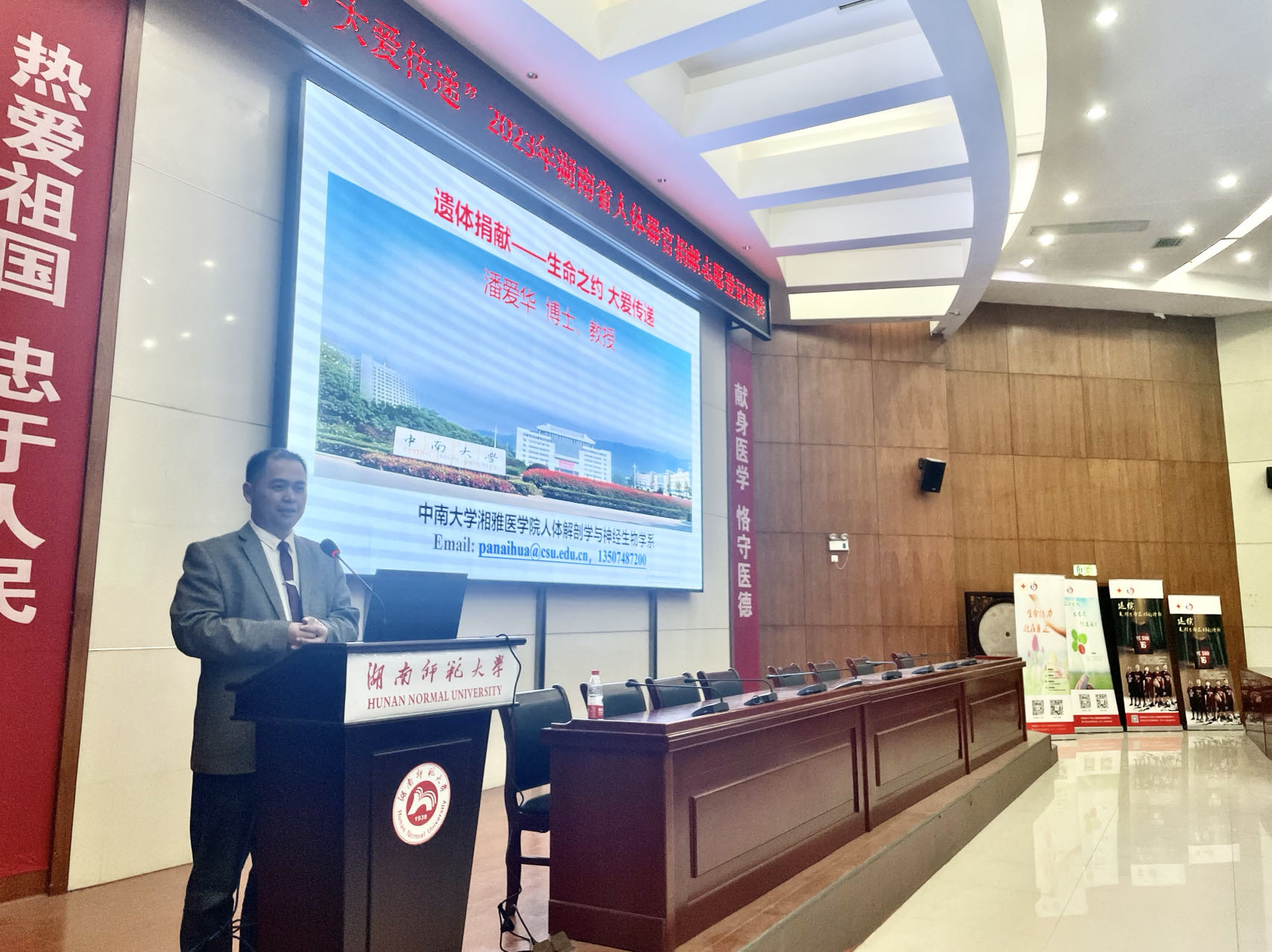 為進(jìn)一步推進(jìn)人體器官捐獻(xiàn)工作,弘揚(yáng)“人道、博愛、奉獻(xiàn)”的紅十字精神,普及器官捐獻(xiàn)知識(shí),更好地守護(hù)人們的生命和健康,2023年12月7日,湖南省人體器官捐獻(xiàn)管理中心聯(lián)合中南大學(xué)湘雅醫(yī)學(xué)院、長沙愛爾眼科醫(yī)院專家教授,在湖南師范大學(xué)醫(yī)學(xué)院舉辦“生命之約、大愛傳遞”專題講座及器官捐獻(xiàn)報(bào)名登記宣傳活動(dòng)。